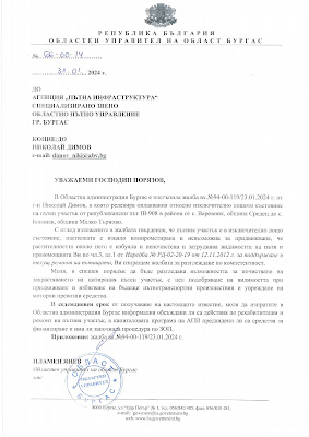 писмо след като бях прочел отговора на Управителя на фирма "Елиза"1999 ЕООД. Уважаеми г-н Стоилов, вие знаете какъв е отговора, но Уважаеми г-н Димитров и Уважаеми г-н Гатев. В писмото изпратено по имела ми пише следното: Относно писмо с изх.№110-12.01.2024 на Общинско предприятие „Организация